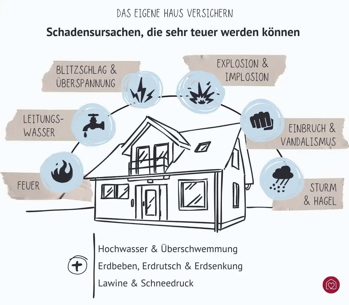 - Wer ein Haus besitzt oder baut, sollte sich gut absichern, denn Schäden durch Feuer, Sturm oder Einbruch können schnell teuer werden.
