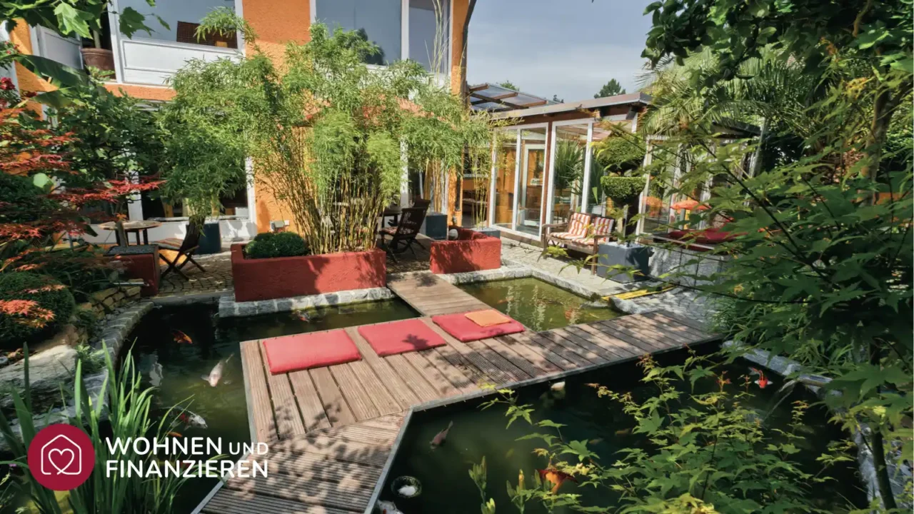 - Garten (Bäume, Pflanzen, Teich/Wasseranlage, Gartenhaus)